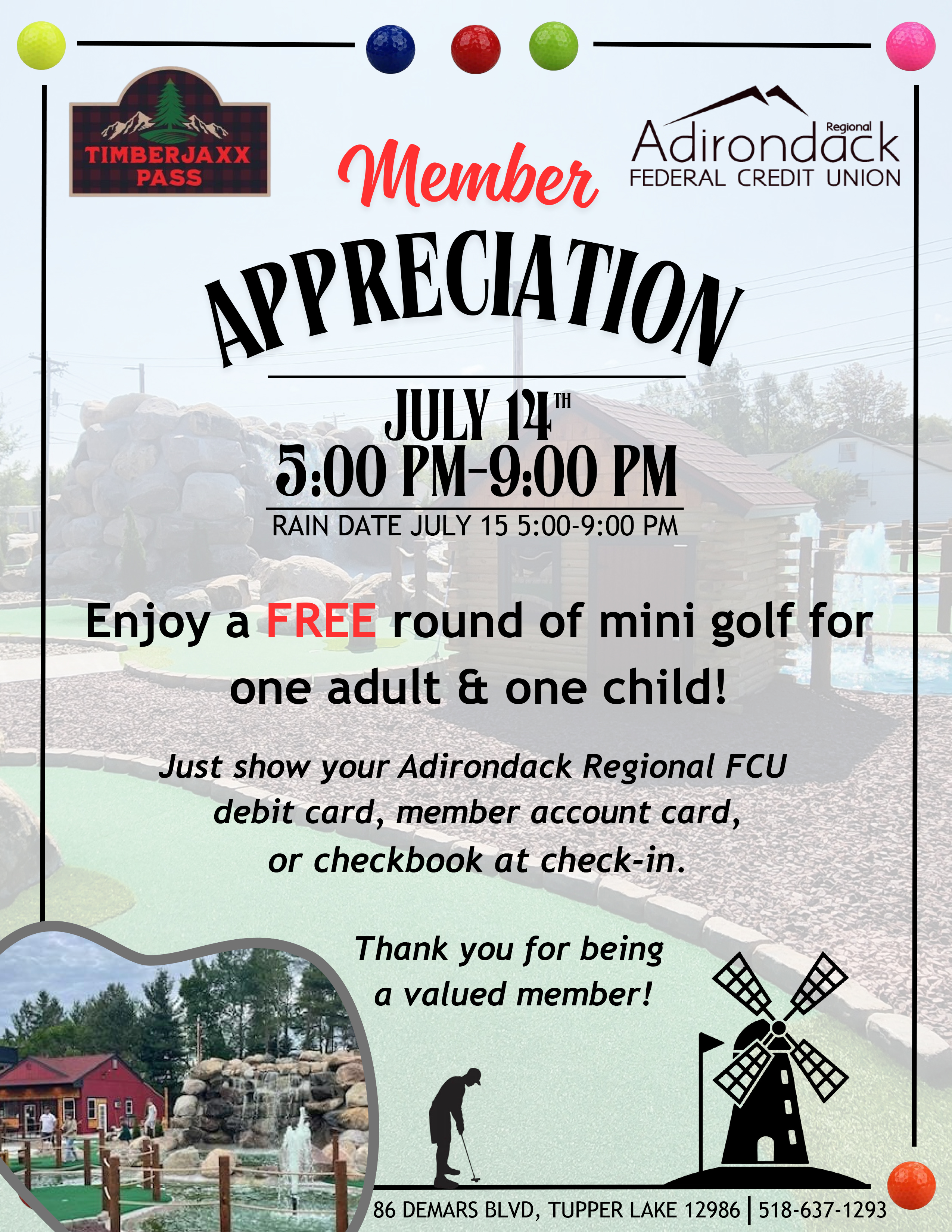 This summer, we’re sponsoring a host of events in the communities we serve—including our first-ever Member Appreciation Events, at which members can get a little something extra just by flashing their Adirondack Regional FCU ATM card.